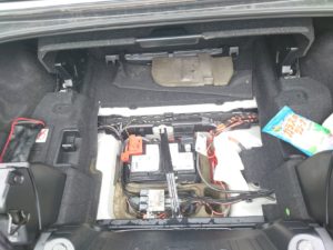 トランクルームを開けるために、ボンネットからブースター接続して、トランクルームを開けます。